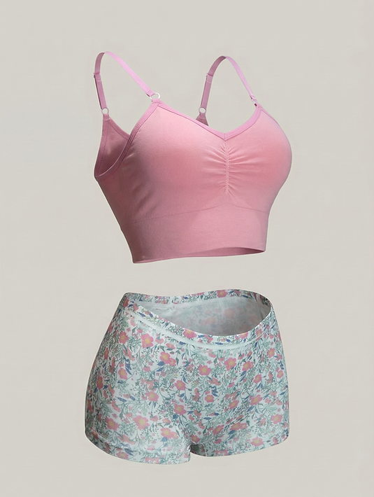 Set Moldeador Ajustable: Top de diseño inteligente con pretina ancha y sistema de retención en el busto para mayor soporte. Cuenta con tirantes ajustables y se complementa con un bóxer seamless ajustable sublimado que realza tu figura. Talla: Unitalla.